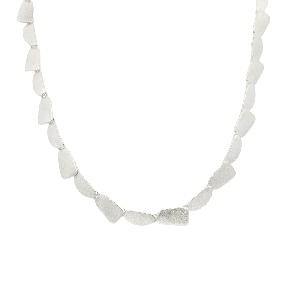 Adorn your neck with a stunning cascade of sterling silver. Petal-like links create a graceful, sculptural effect in this necklace by Polish designer Eva Stone. Drawing from the rich metalsmithing traditions & natural history of the region, she masterfully infuses each piece with a striking blend of heritage & contemorary edge.Â