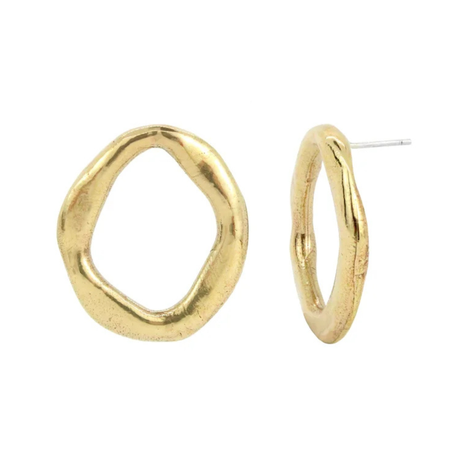 Enhance your look with Ladha's Maji stud earrings! The organic stud is crafted in bronze with a high-polish finish. The freeform shape gives a modern take on a timeless classic. You are definitely making a lasting impression with these bold earrings.