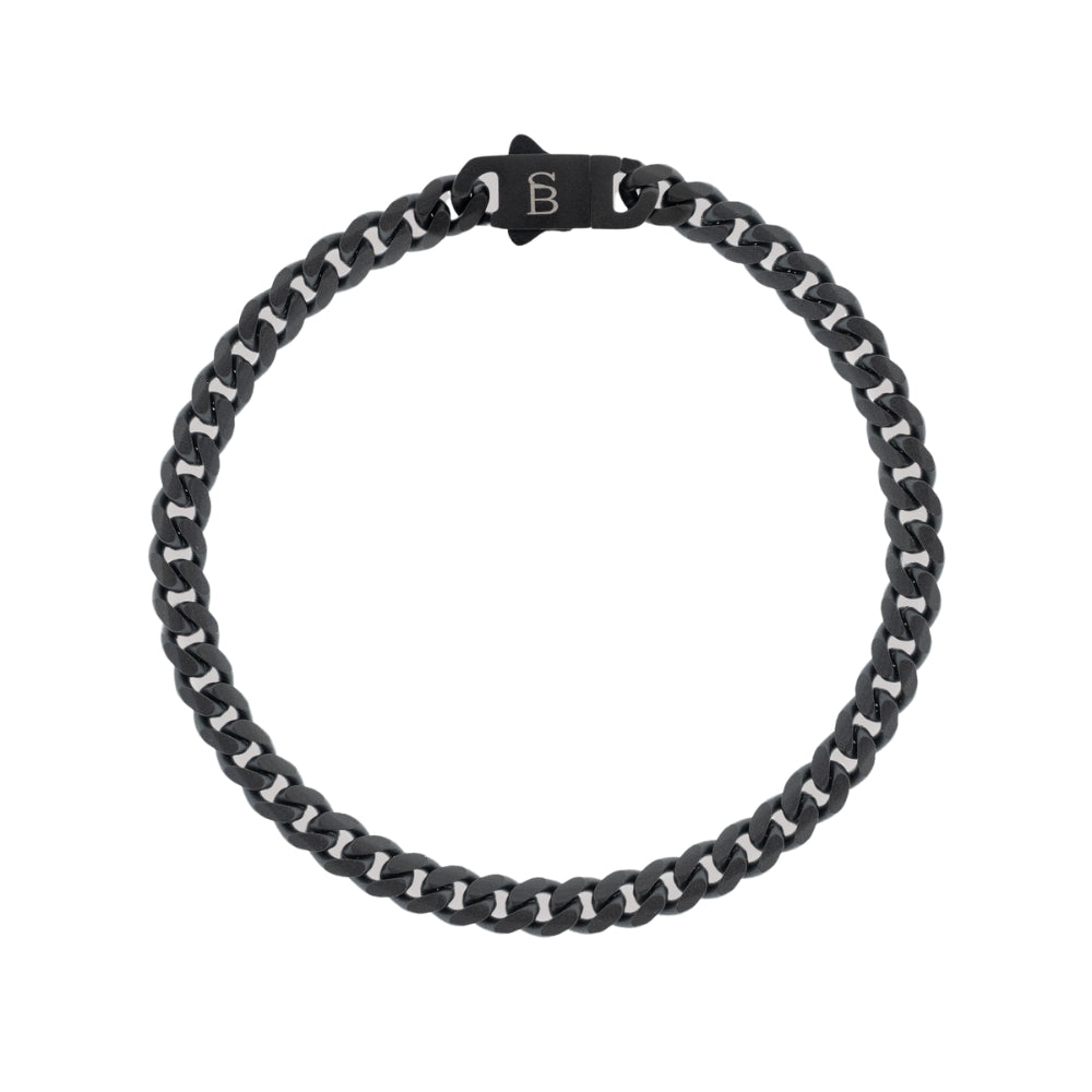 Matte Black-Plated Stainless Steel Curb Link Bracelet - "Svelte Stephen"