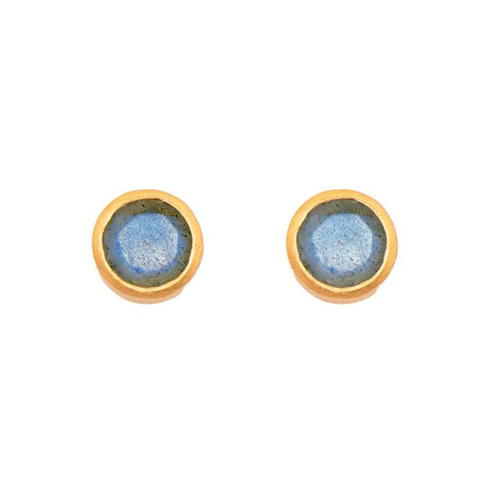 These delightful little studs feature round faceted labradorite that flashes in the light. Wrapped in a bezel of gold vermeil, these earrings are simple and splendid all in one!