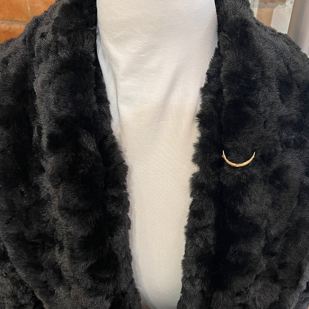 A vintage crescent moon pin featuring a brushed finish, delicately set with a 1.8mm diamond.