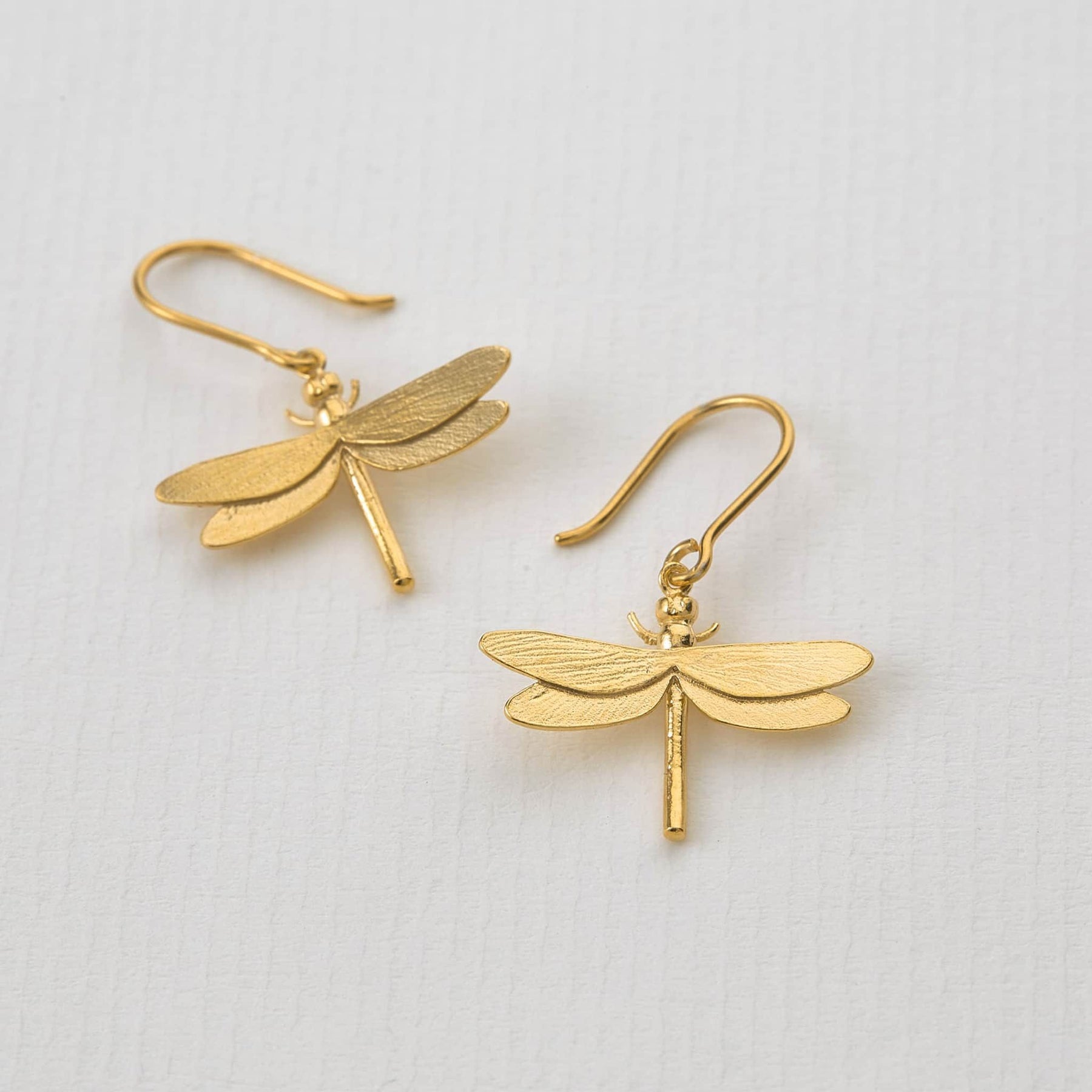Gold Vermeil Hook Earrings - "Dragonfly"