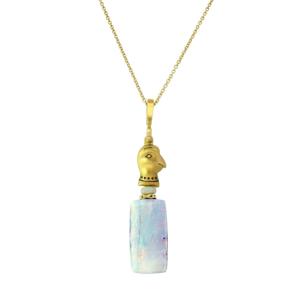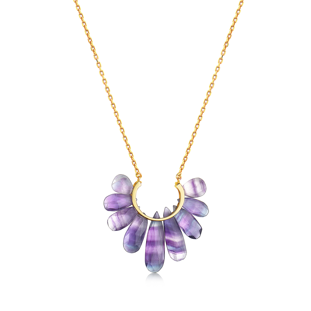 Fluorite & Yellow Gold Necklace - "Peacock"