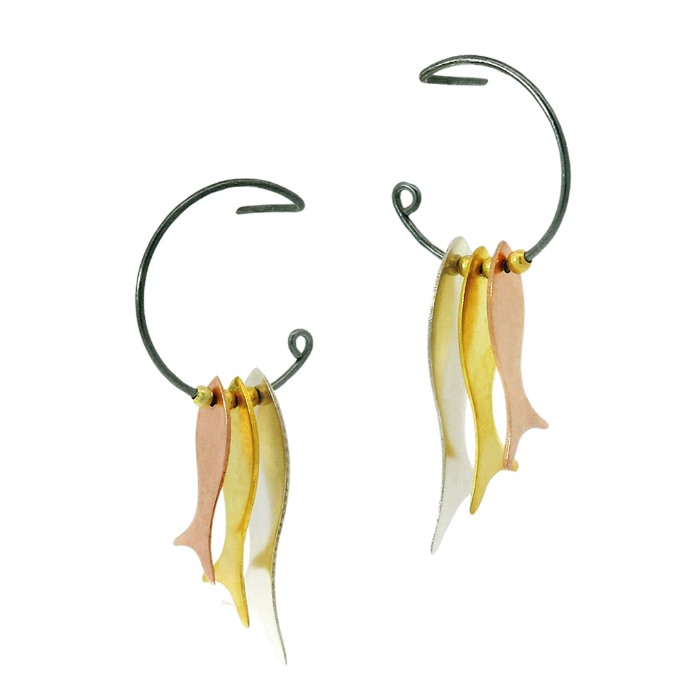 Sterling Silver & Gold Vermeil Dangle Earrings - "Fish Family"