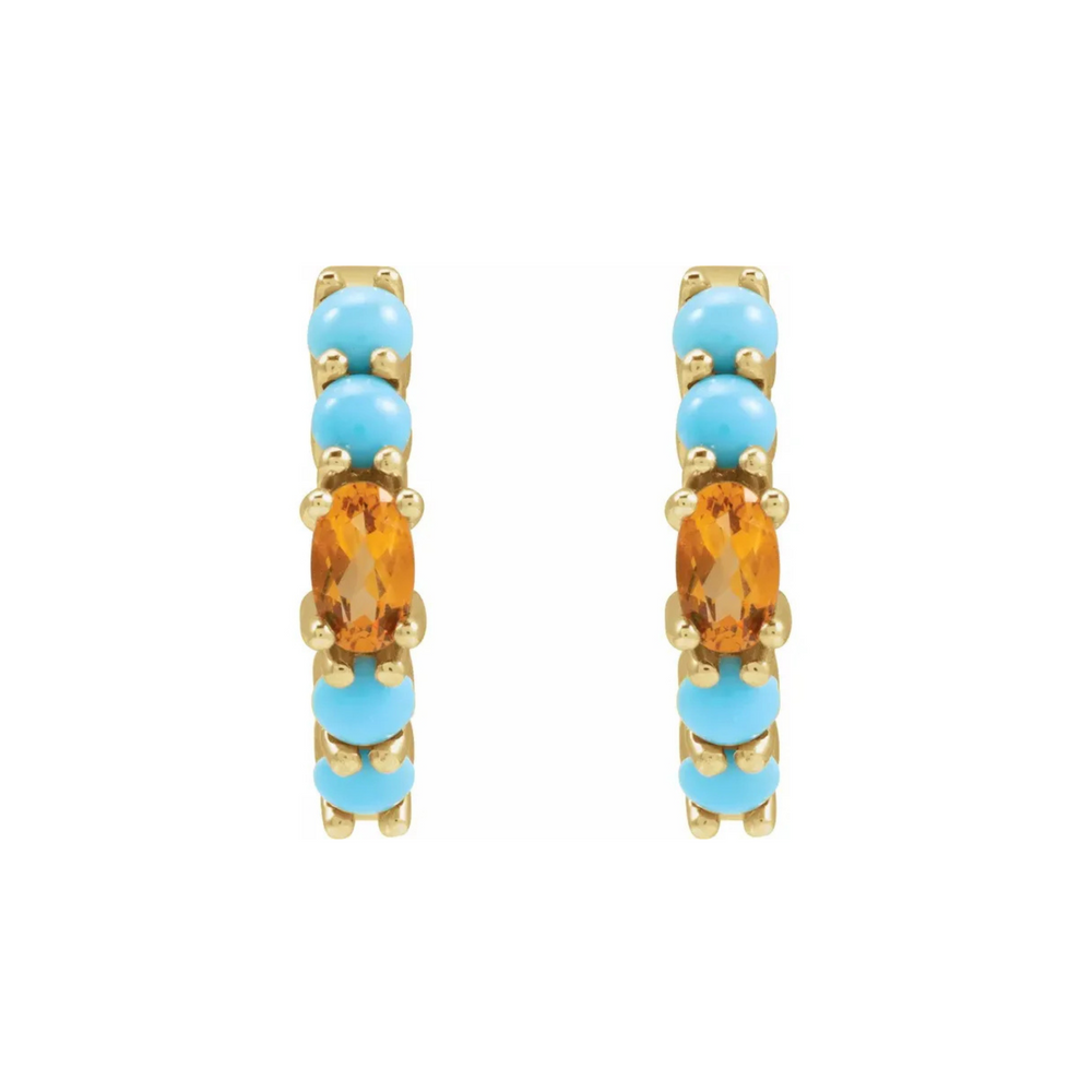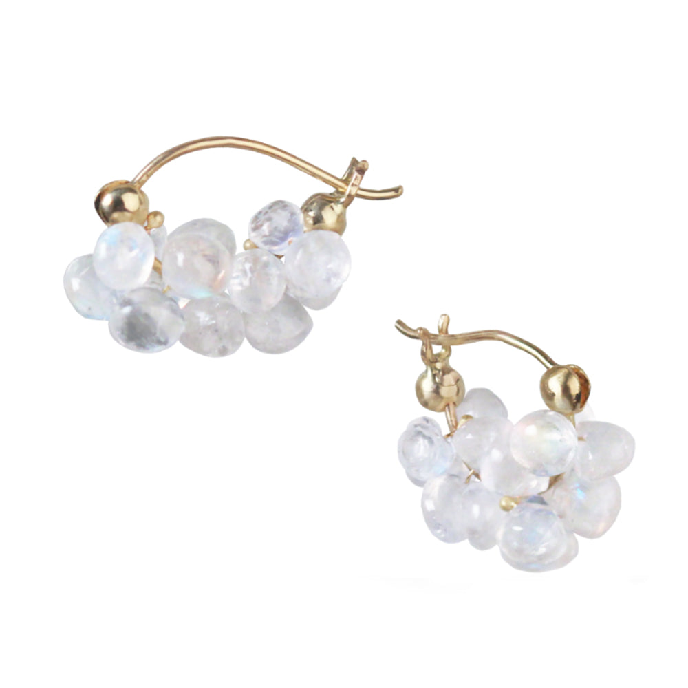 Rainbow Moonstone & Yellow Gold Huggie Earrings - "Cloud"