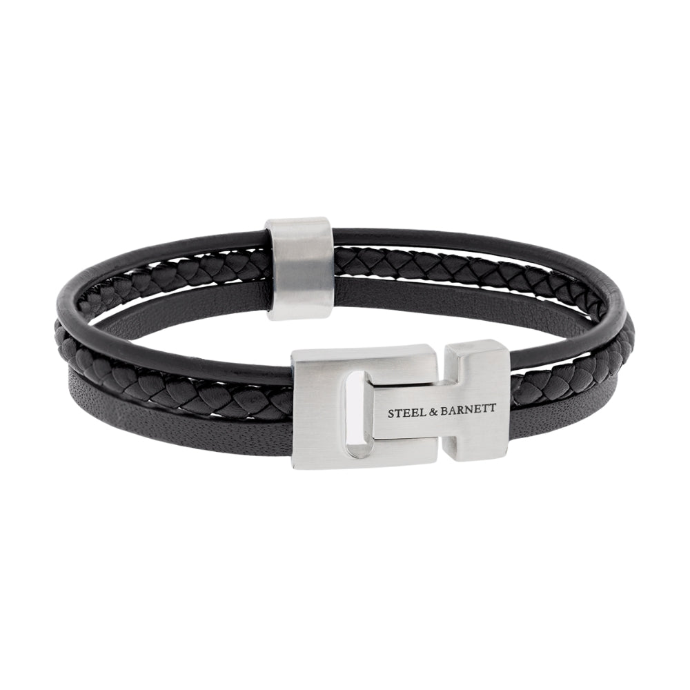 The "Casual Cole" bracelet is a celebration of minimalist design and expert craftsmanship. Made from three distinct styles of soft, genuine black Napa leather cords, this 12mm piece blends texture and elegance. A brushed silver stainless steel slider ensures a comfortable fit, while the engraved 316L stainless steel clasp provides secure closure and a subtle nod to STEEL & BARNETT’s refined details. The "Casual Cole" bracelet offers a clean and timeless look, ideal for any occasion.