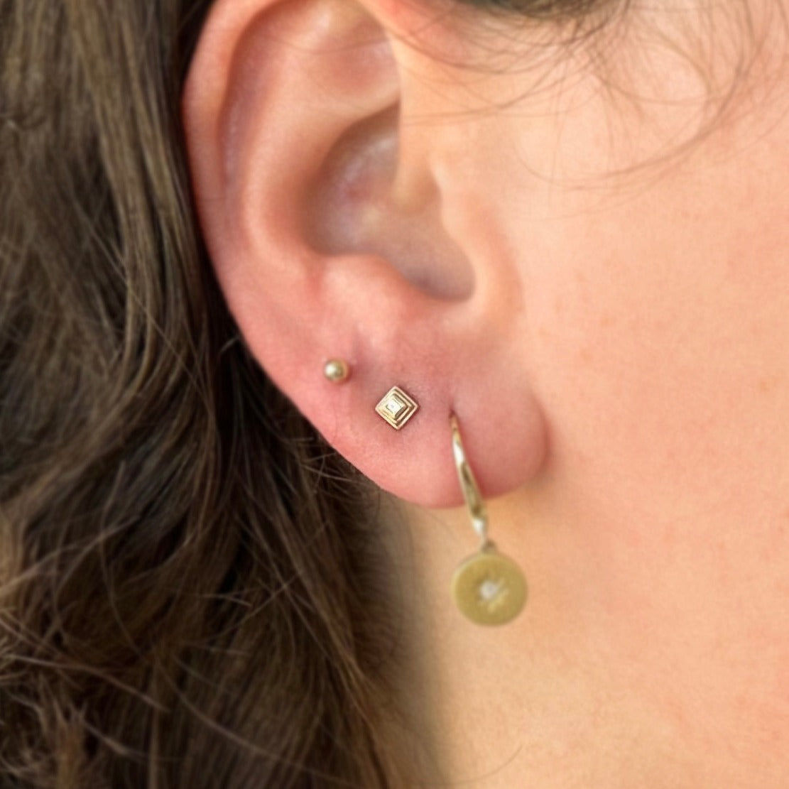 Diamond & Yellow Gold Square Studs - "Ziggurat"