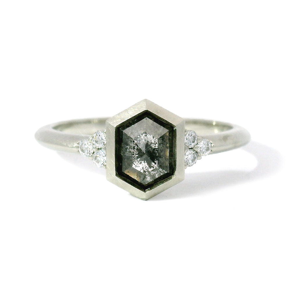 Hexagonal Salt & Pepper Diamond Ring - "Denise"