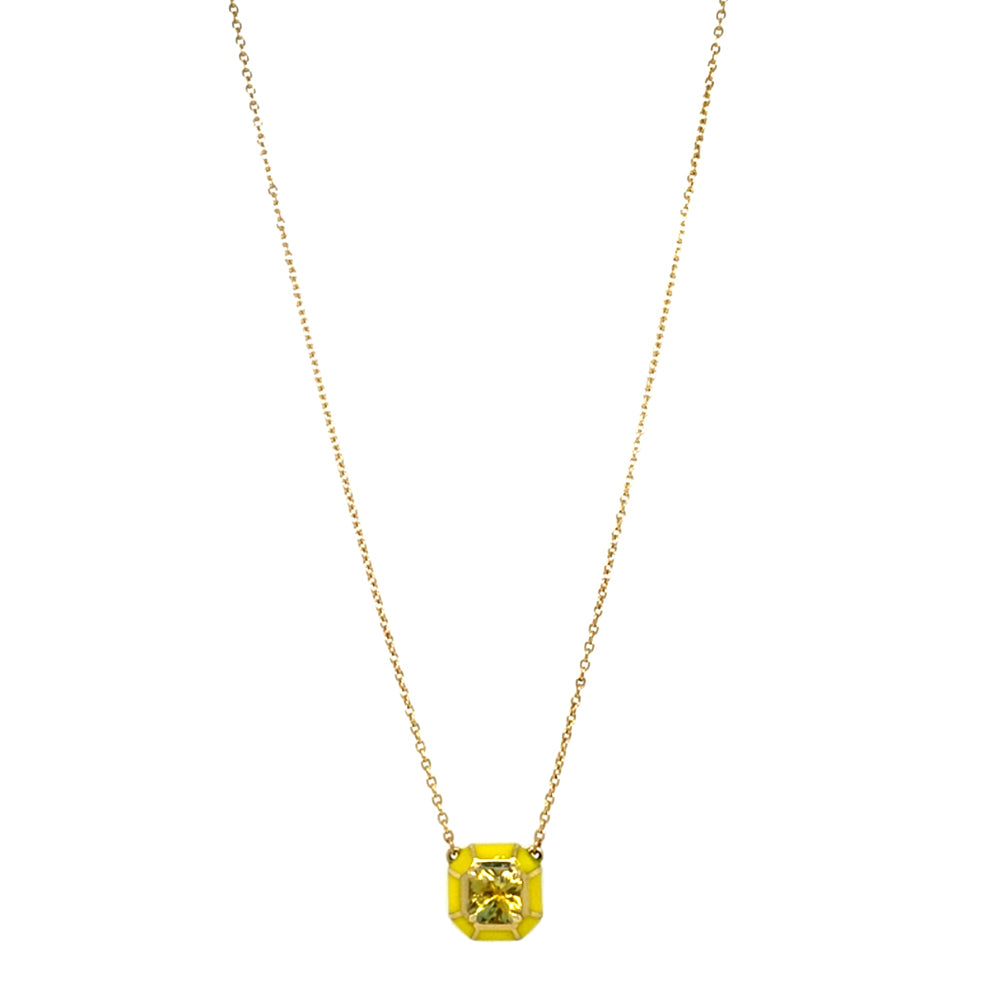 Yellow Montana Sapphire & Enamel Necklace - "Rock Candy Limoncello"