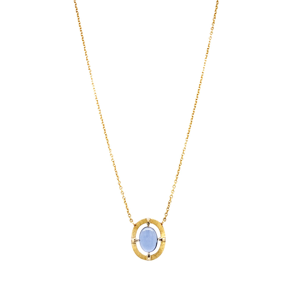 One-of-a-Kind Yogo Sapphire Two Tone Gold Necklace - "Floating Majesty"