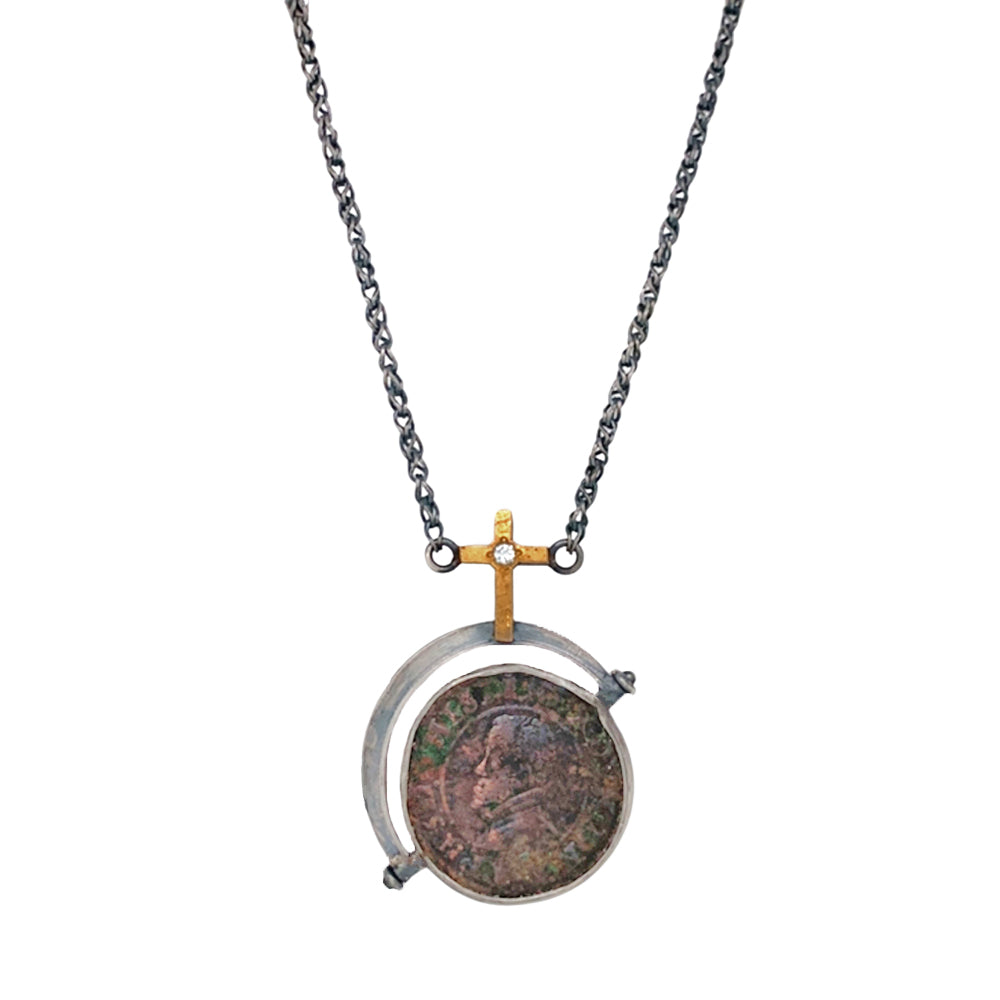 One-of-a-Kind Spanish Liard Coin & Cross Two-Tone Necklace - "Peace & Justice"