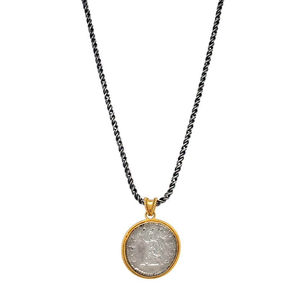 Yellow Gold & Ancient Denarius Coin Pendant - "Severus"