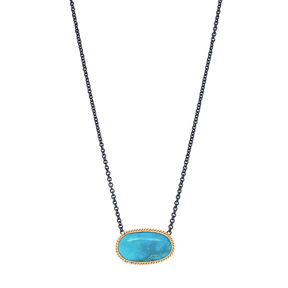 Turquoise, Cassiterite, & Diamond Necklace - "Western Sky"