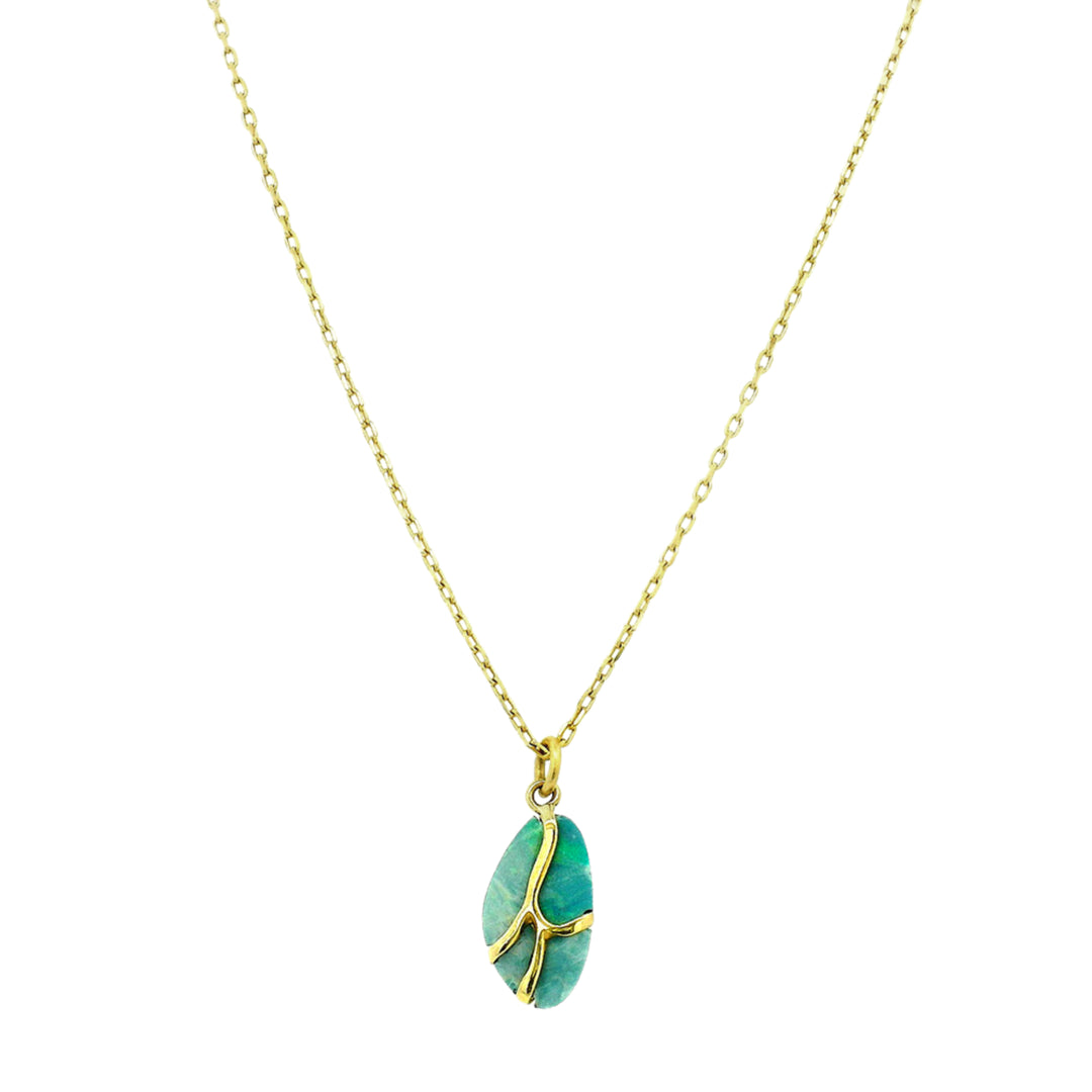 Australian Opal Doublet, Silver & Gold Necklace - "Electric Waters"