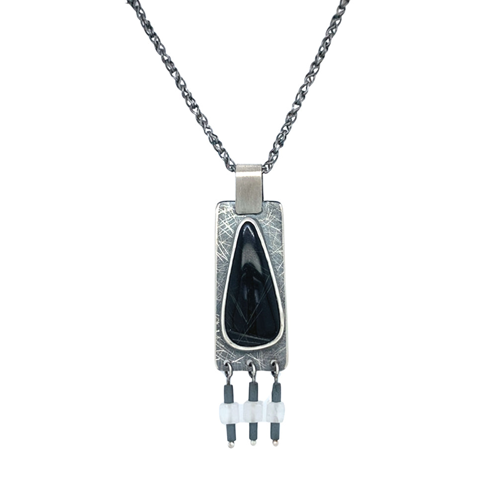 Sterling Silver, Rutile Quartz & Onyx Pendant - "Touch of Night"