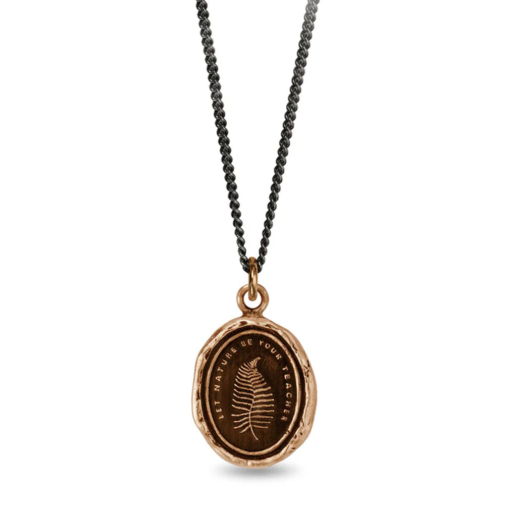 Inspired by a collection of Victorian wax seals found while digging through a box of old letters at an estate sale, Pyrrha's talismans were born from a desire to give the fragile antique seals new life and permanence. While Danielle and Wade design and create the imagery for their pieces, they are rooted in that original connection to the past.
