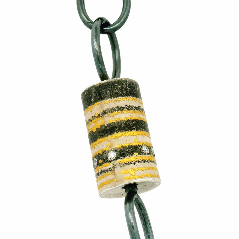 Diamond & Cobalt Chrome Link Necklace - "Double Pebble"