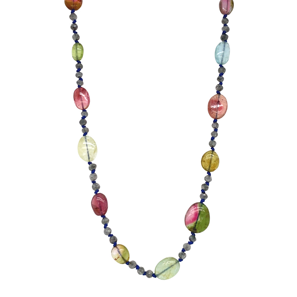 Tourmaline and Grey Diamond Beaded Necklace - "Mountain Blooms"