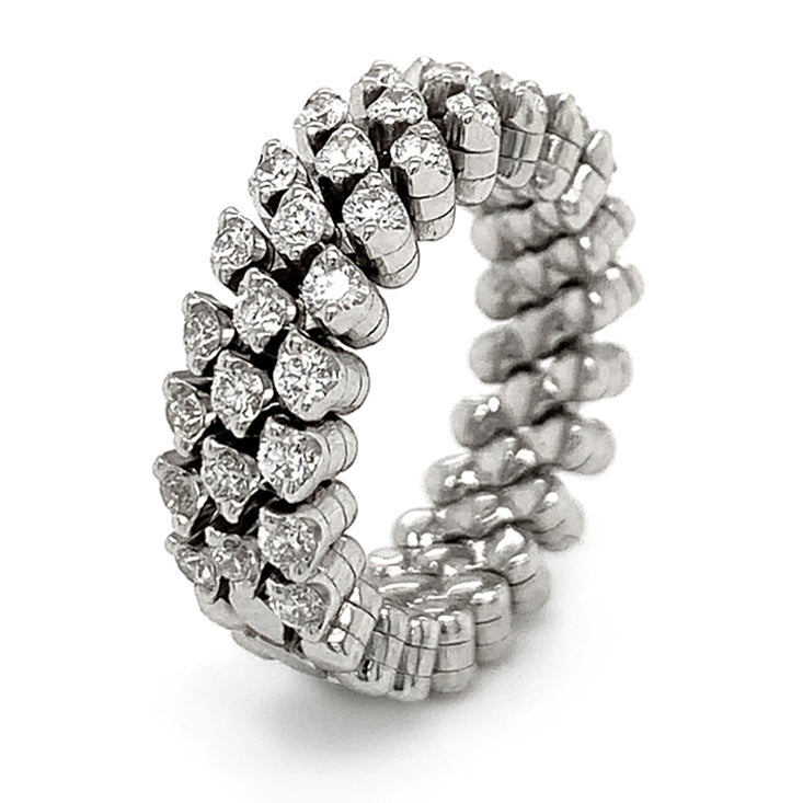 18K White Gold Three Row Expandable Brevetto Diamond Ring