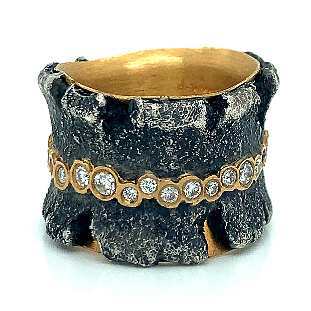 22K Yellow Gold & Sterling Silver Modular Band - "Vetus Three"